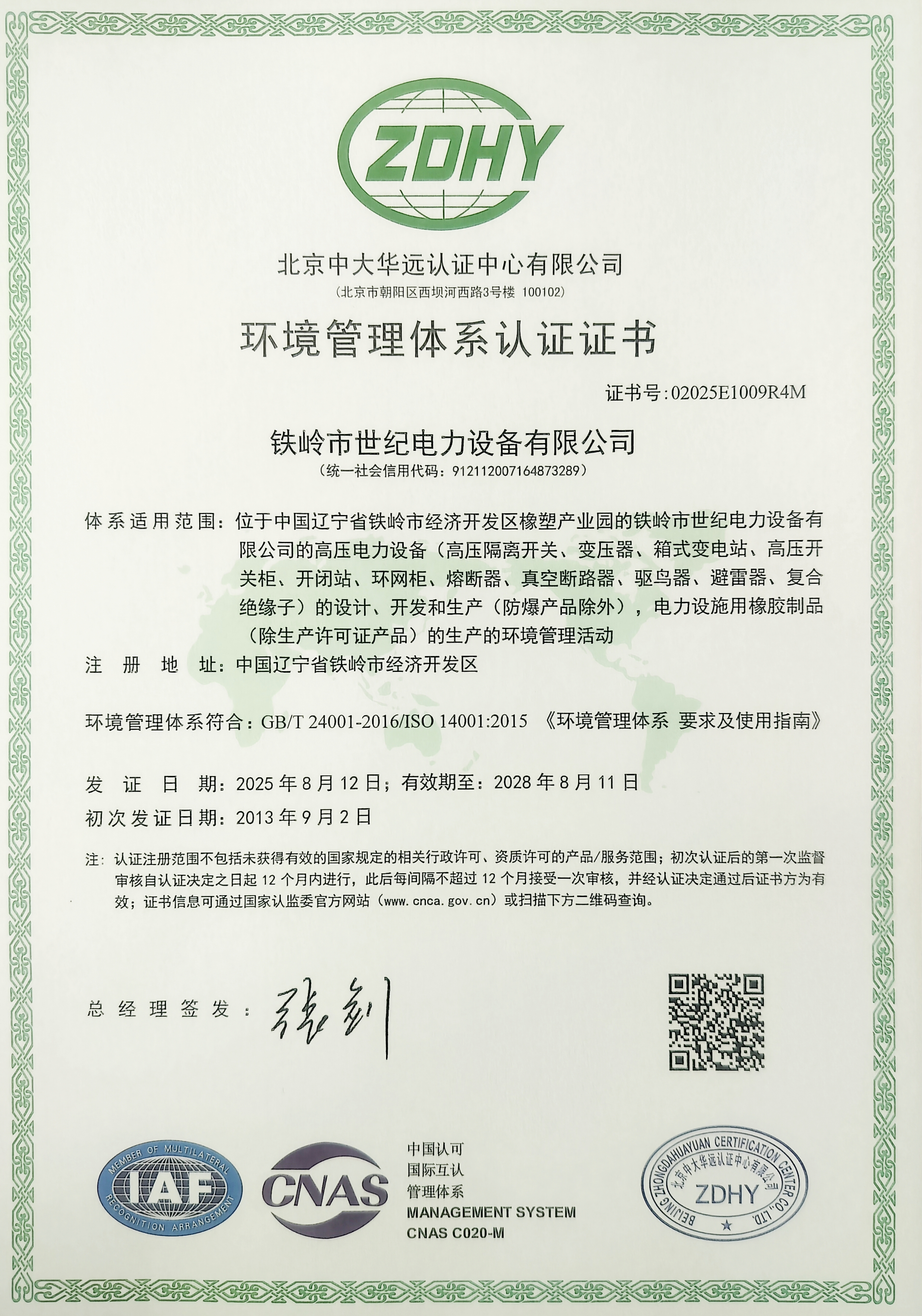 鐵嶺市世紀(jì)電力設(shè)備有限公司是集科研開發(fā)、生產(chǎn)制造、用戶服務(wù)于一體的國(guó)家高新技術(shù)企業(yè),始建于1999年,位于鐵嶺經(jīng)濟(jì)開發(fā)區(qū),占地面積5萬余平方米,建筑面積2萬余平方米。主要從事國(guó)家電網(wǎng)配套戶外高低壓隔離開關(guān)、電力電纜、變壓器成套裝置、高低壓開關(guān)柜、箱式變電站、絕緣子等產(chǎn)品的研發(fā)、生產(chǎn)和銷售。公司現(xiàn)有國(guó)家發(fā)明專利6項(xiàng)、實(shí)用新型專利9項(xiàng),公司通過了ISO9001國(guó)際質(zhì)量管理體系認(rèn)證、ISO14001環(huán)境管理體系認(rèn)證和ISO 45001職業(yè)健康安全體系認(rèn)證。